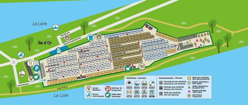 Der Campingplatz befindet sich auf der Reiseroute für Fahrräder am Loire-Fluss und ist nur 810 m vom Bahnhof entfernt.